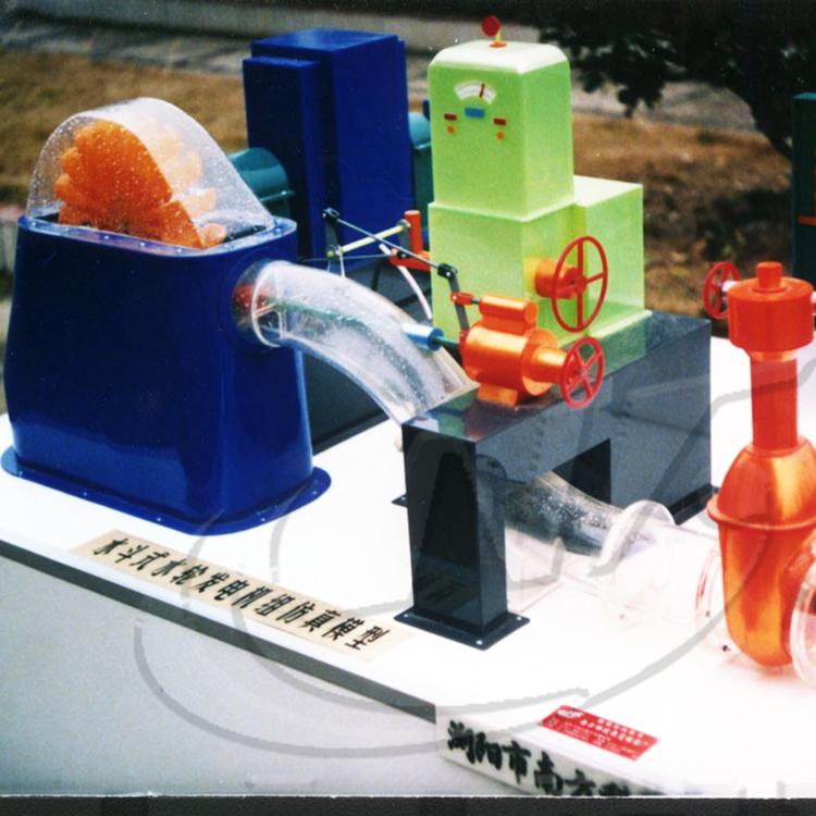 功能概述:泵站樞紐工程仿真模型由泵站進(jìn)水與出水流道、微縮仿真電機(jī)外殼、葉輪、金屬泵軸等組成。摁下開關(guān),會看到水泵葉輪勻速模擬轉(zhuǎn)動,LED燈光演示進(jìn)出水流道方向。