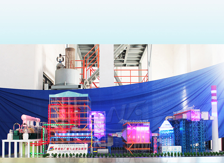 火力發(fā)電廠煙氣處理模型 此電廠模型用料講究、運(yùn)用大尺寸零件一體模壓與3D打印技術(shù)制作工藝精湛,設(shè)備參照實(shí)物顏色來分色制作,具備工業(yè)質(zhì)感且科技感十足,四周加裝透明鋼化防塵罩保障觀眾安全。鍋爐整體透視、管路顏色分明,高低壓缸與發(fā)電機(jī)做四分之一剖面詳細(xì)展示內(nèi)部結(jié)構(gòu),動(dòng)態(tài)模擬展示機(jī)組運(yùn)行狀態(tài),配備語音解說,一年質(zhì)保。
